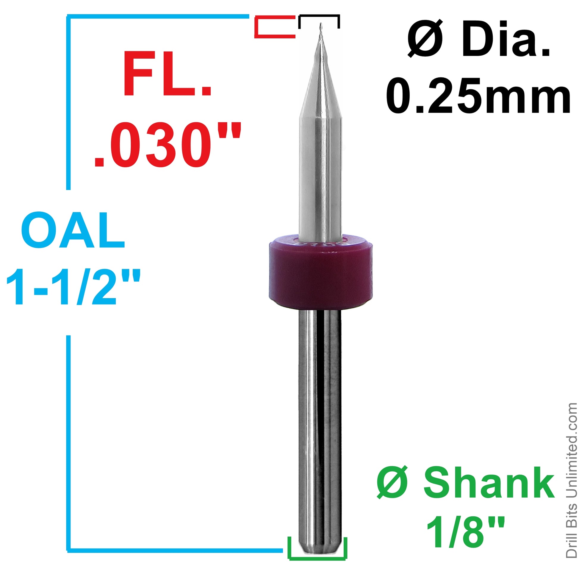 0.25mm .010" 2-Flute Square End Carbide End Mill M220