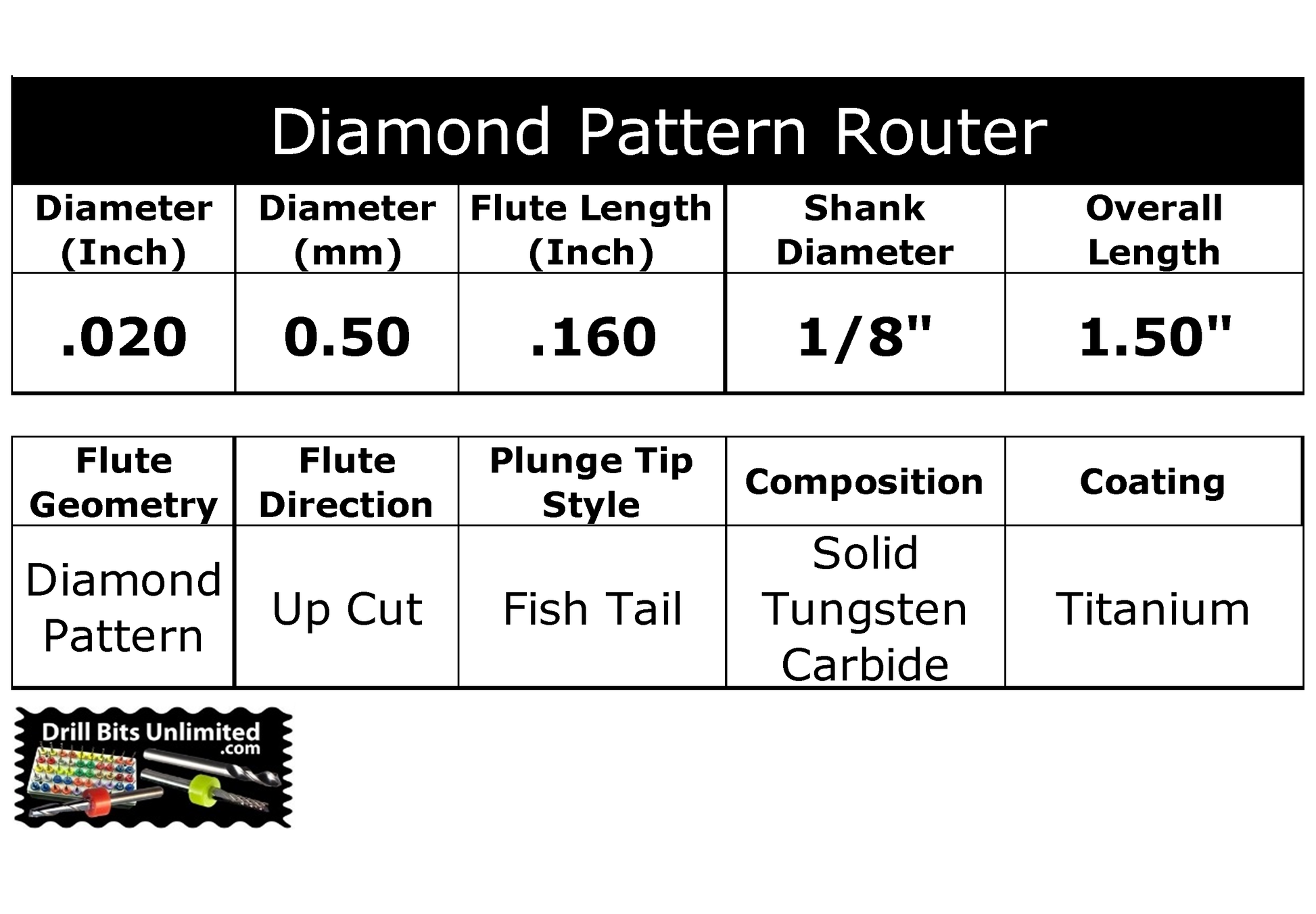 .020" 0.50mm x 4.0mm LOC - Carbide Diamond Pattern Router Titanium Coated M144