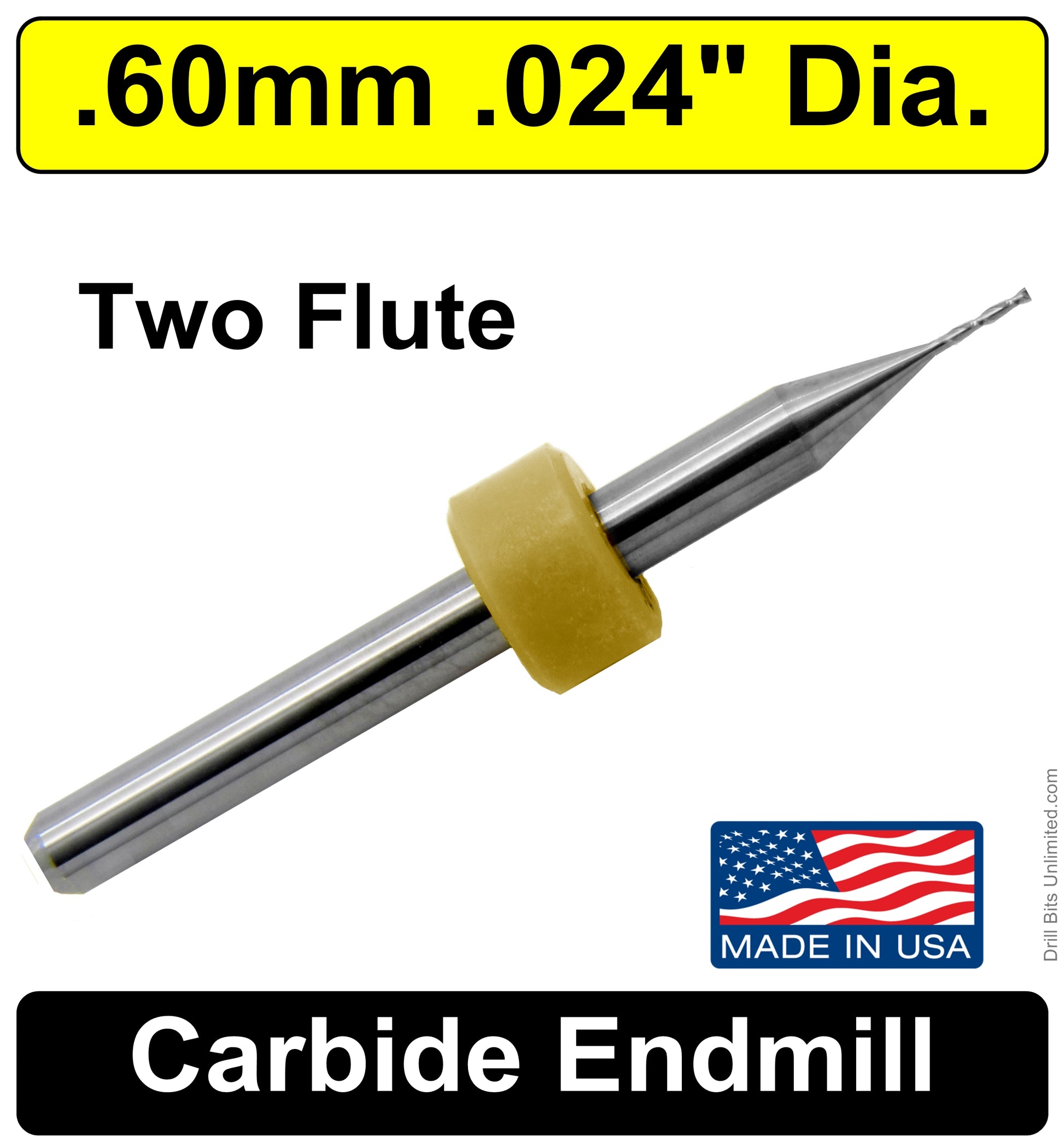.024" 0.60mm x .079" LOC Two Flute Carbide End Mill Up Cut Square End Made in U.S.A. M200A