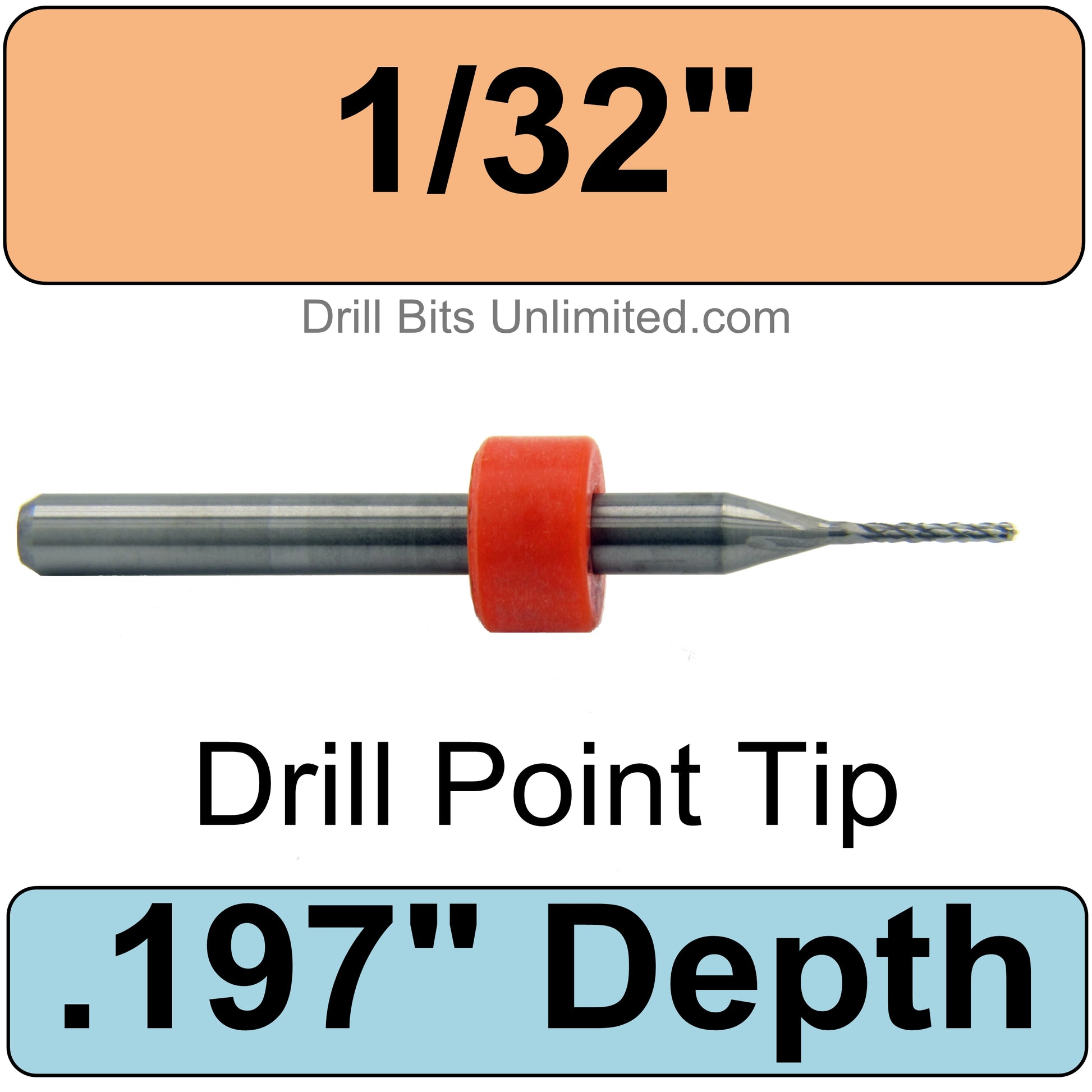 .0315" 1/32" x .197" LOC Diamond Flute Carbide Router Drill Point Tip R105D