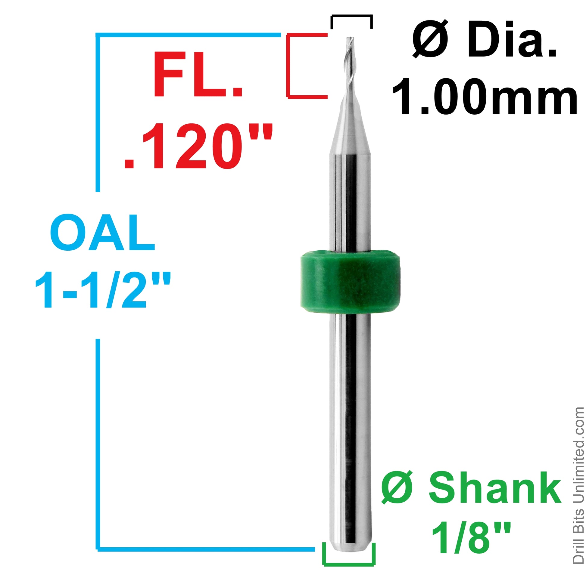 1.00mm x .120" LOC Two Flute UP Cut Carbide End Mill Square End - Made in U.S.A. M109