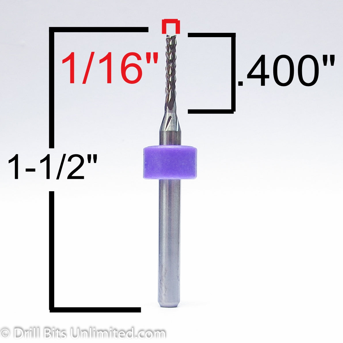 Fifty Pieces 1/16" Route Bits Diamond Flutes 1/8" Shanks Fish Tail Tip - Up Cut Solid Carbide - Super Value - URD140