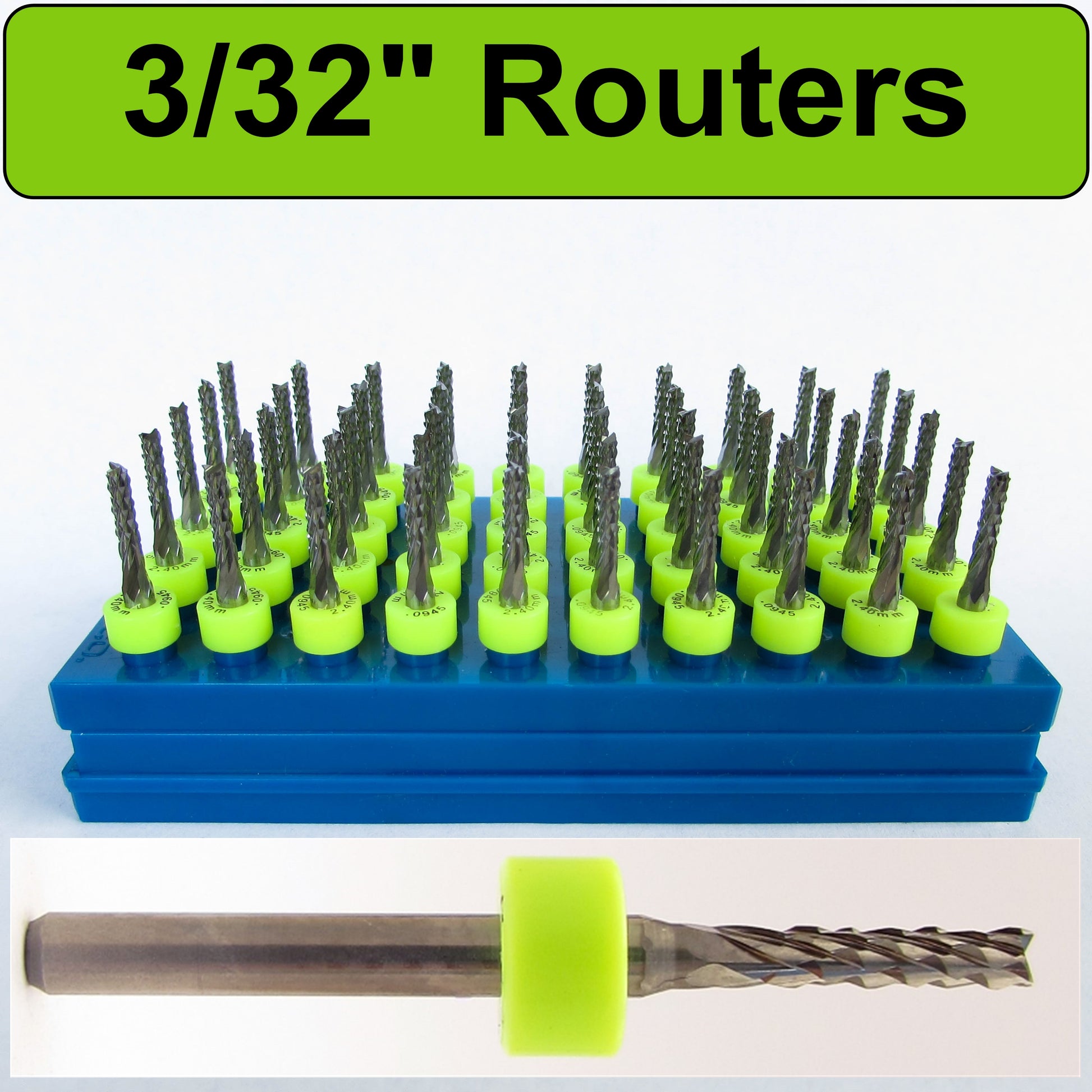 Fifty Pieces 3/32" Route Bits Diamond Flutes 1/8" Shanks Fish Tail Tip - Up Cut Solid Carbide - Super Value - URD155
