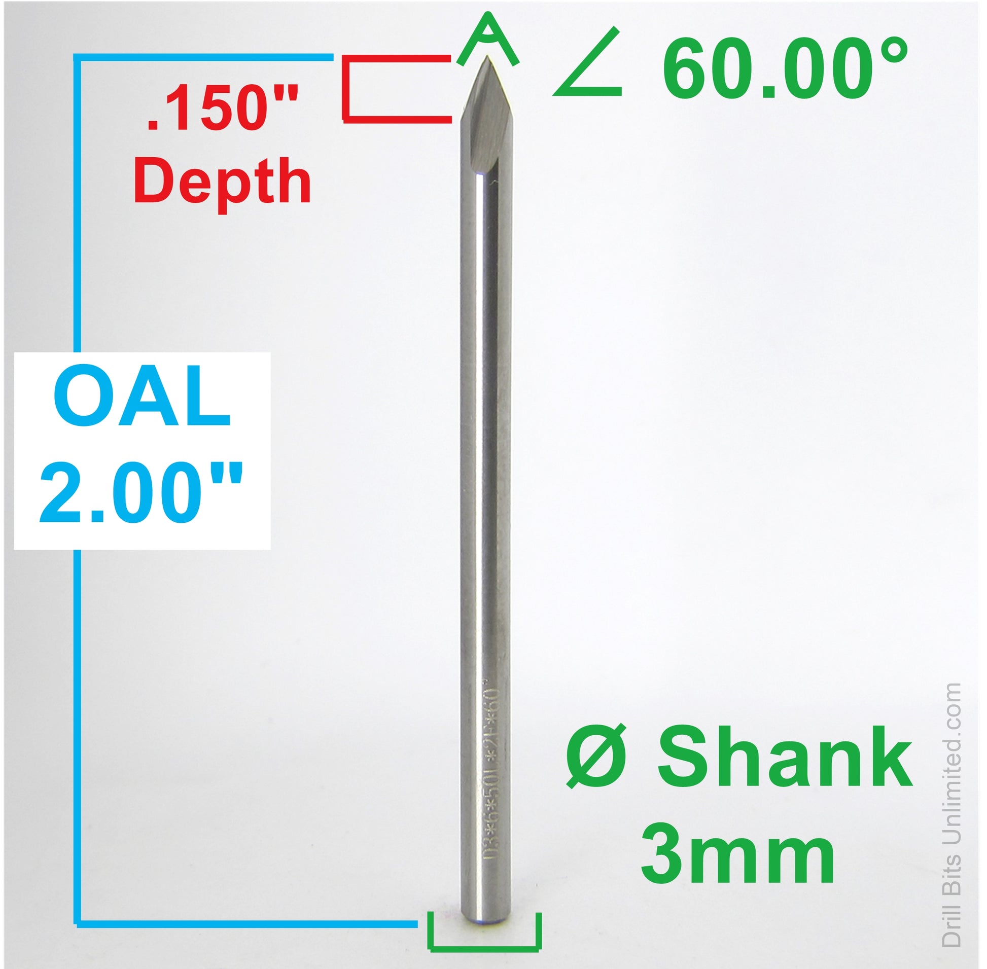 3mm (0.118") 60° 2-Flute Spiral V-Engraver – Solid Carbide