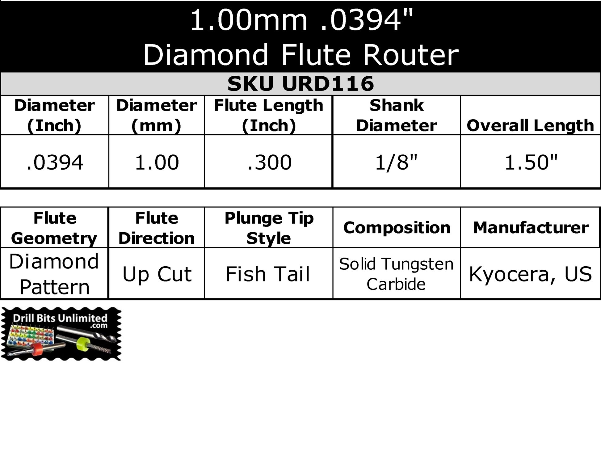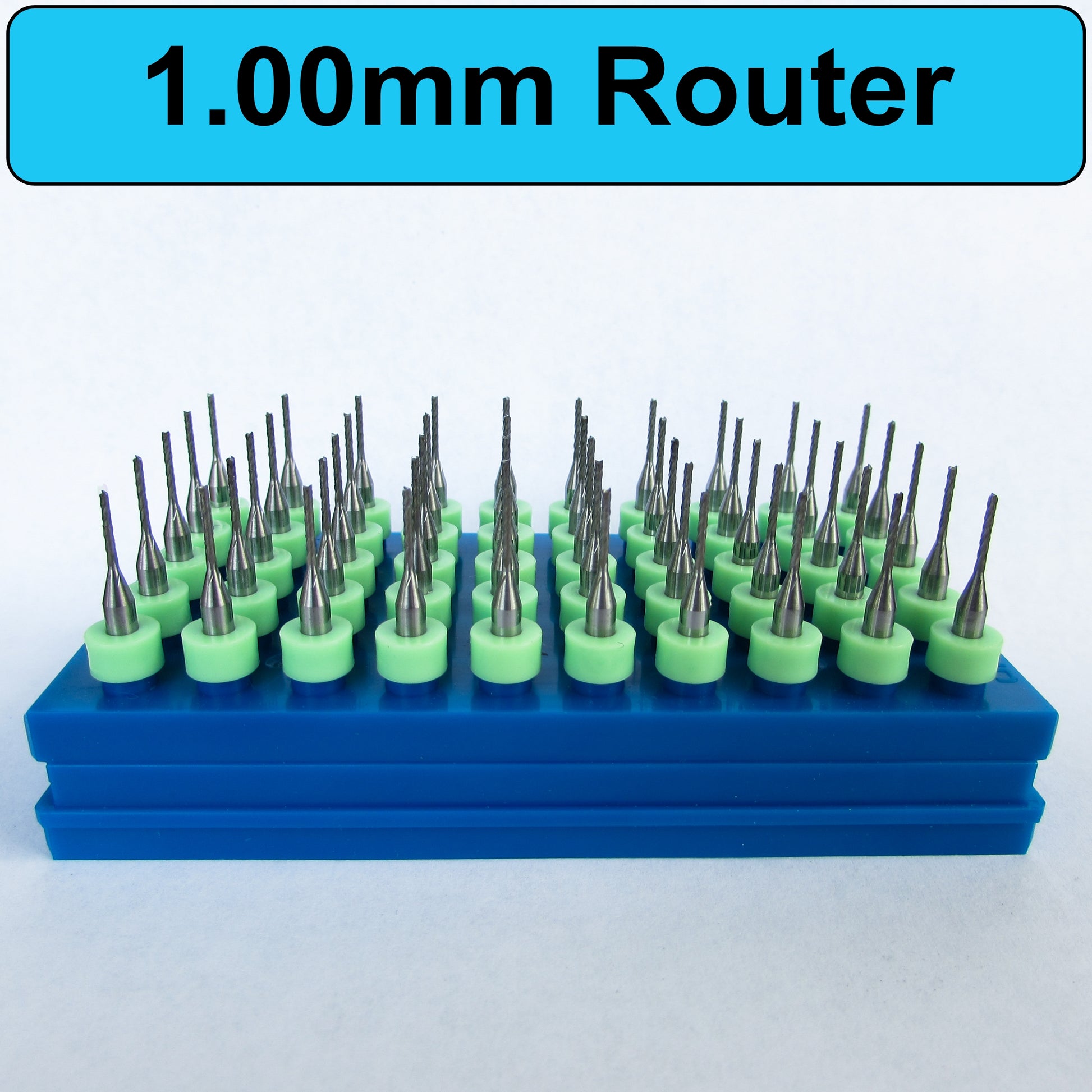 Fifty Pieces 1.00mm Router Bits Diamond Flutes 1/8" Shanks Fish Tail Tip - Up Cut Solid Carbide - Super Value - URD116